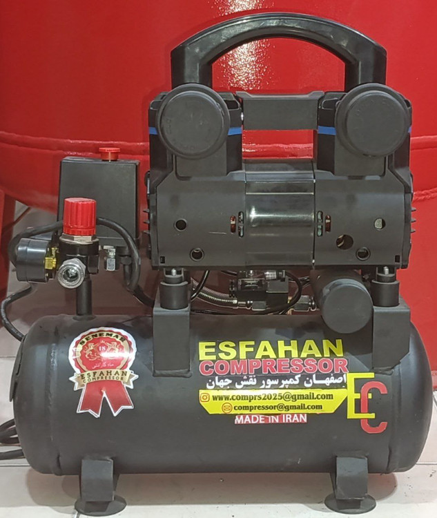 پمپ باد سایلنت ۱۰ لیتری اصفهان کمپرسور نقش جهان (بدون روغن)